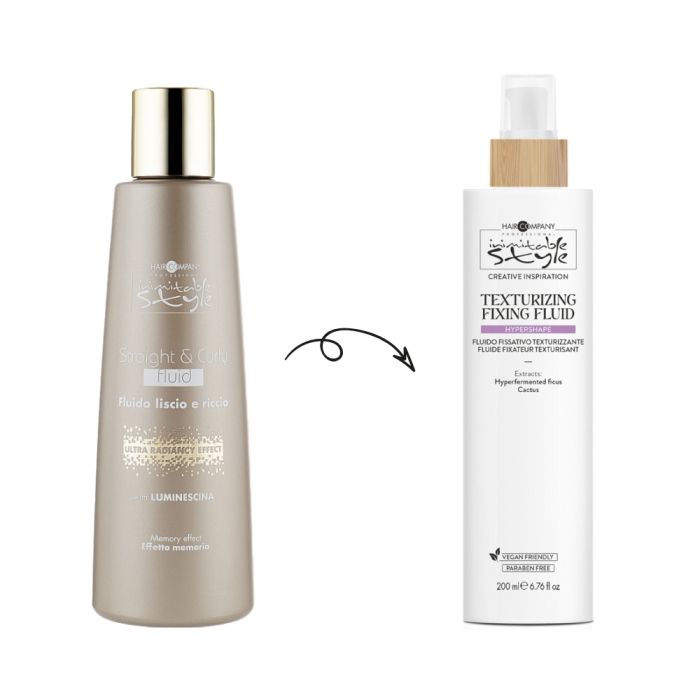 Флюїд для укладання прямого і кучерявого волосся Hair Company Inimitable Style Straight & Curly Fluid / Creative Inspiration Hypershape Texturizing Fixing Fluid