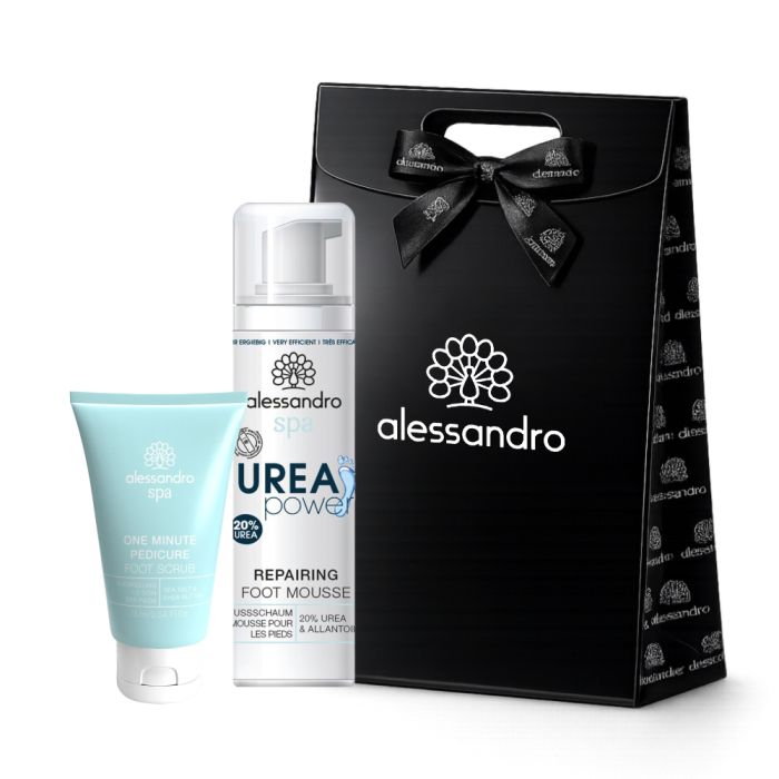 - Alessandro International Spa Repearing Foot Peeling – відновлюючий пілінг для шкіри ніг з морською сіллю та комплексом масел, що м'яко видаляє шкіру, що погрубіла, пом'якшує і готує її до зволоження.